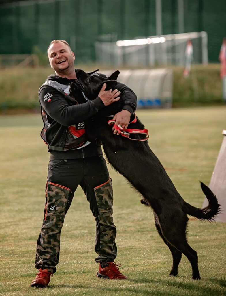 Hugo Lewkowicz, 25 letni pozorant pochodzący z Krakowa. Z kynologią miał do czynienia od małego, ponieważ jego Ojciec – Jacek Lewkowicz jest sędzią międzynarodowym, pozorantem licencjonowanym oraz czynnym zawodnikiem, więc jego los był z góry przesądzony 🙂 Swoją przygodę z pozorowaniem na poważnie rozpoczął w wieku 14 lat, zdobywając doświadczenie od najmłodszych lat pod okiem swojego Taty. Do dziś jest on jego mentorem, udzielającym cennych wskazówek na wspólnych treningach i stanowi wzór do naśladowania nie tylko jako pozorant. Hugo rozwija swoje umiejętności pod okiem takich trenerów jak Dirk Edler i Paweł Krawczyk. Wiele cennych wskazówek, motywacji do ciągłego dosknalenia i wsparcie otrzymał także od Yuliana Hatali i Michała Wiśniewskiego.